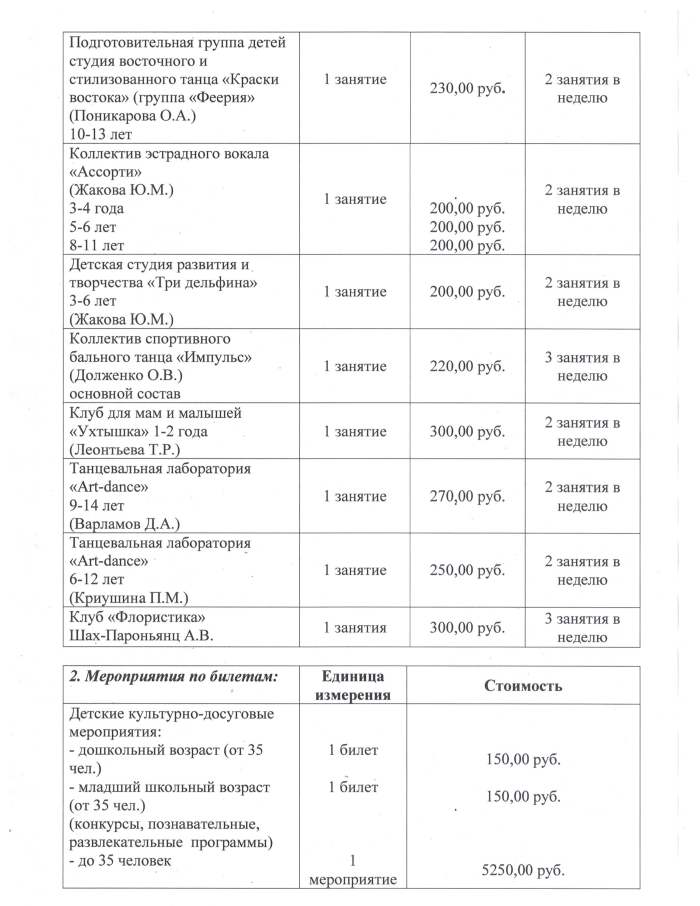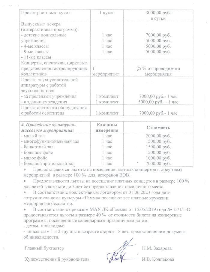 Прейскурант цен на 2025-2026 год