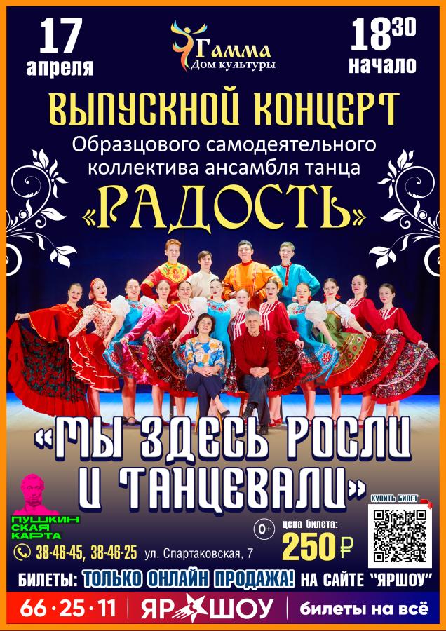 ВСЕ НА ВЫПУСКНОЙ! Приглашаем вас на незабываемый вечер танца!   Образцовый самодеятельный коллектив, ансамбль танца «Радость», представляет свой выпускной отчётный концерт «Мы здесь росли и танцевали».