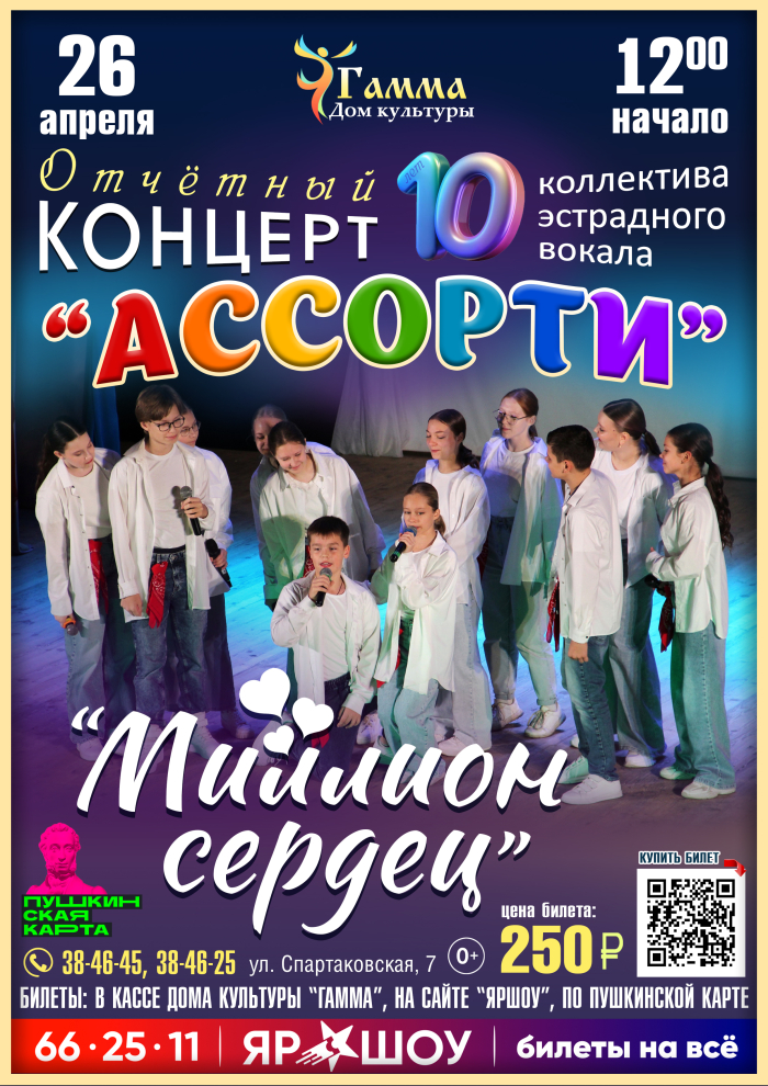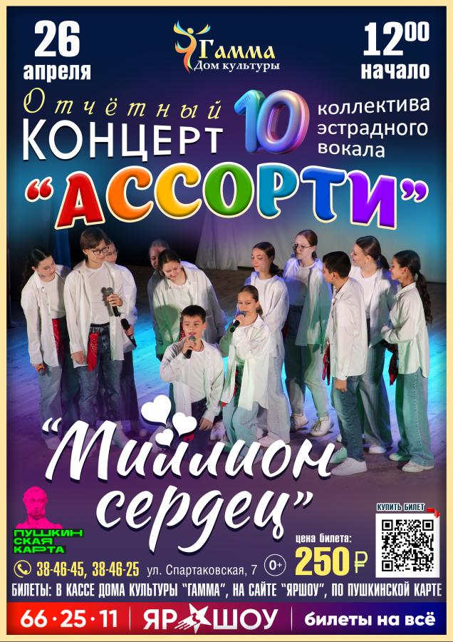 «Миллион сердец» Приглашаем вас на отчётный концерт коллектива эстрадного вокала «Ассорти»!